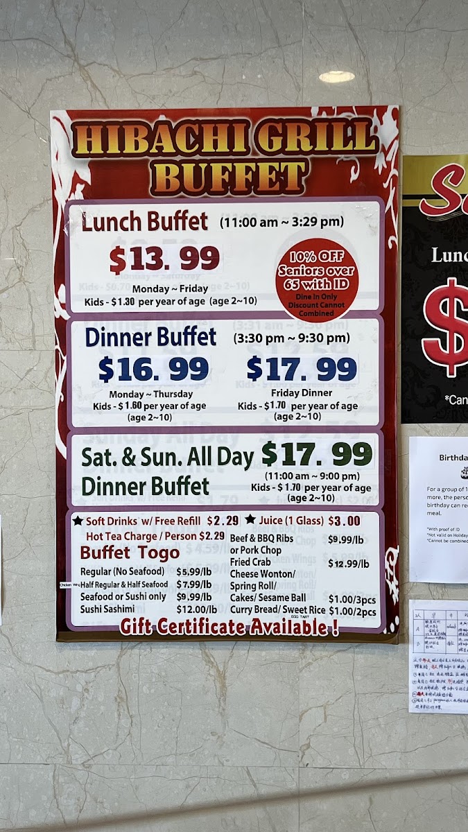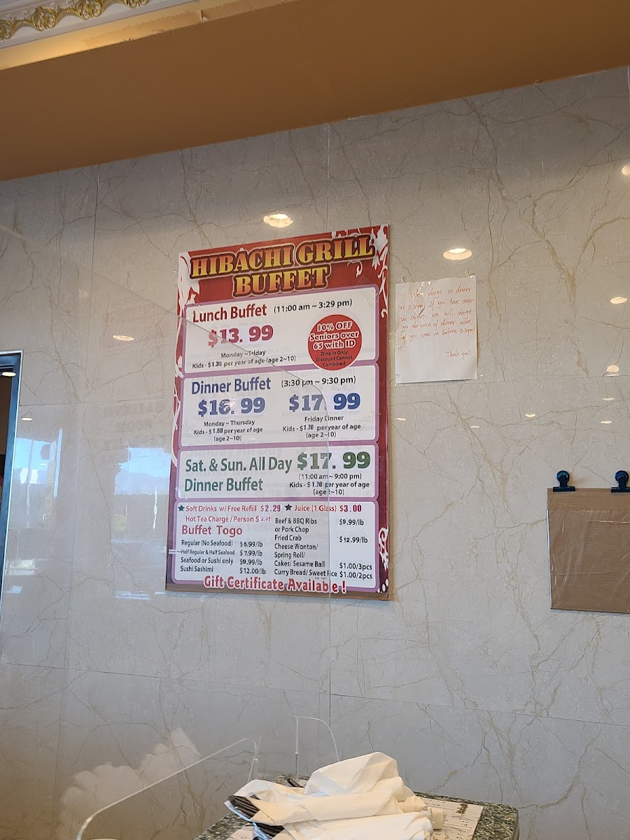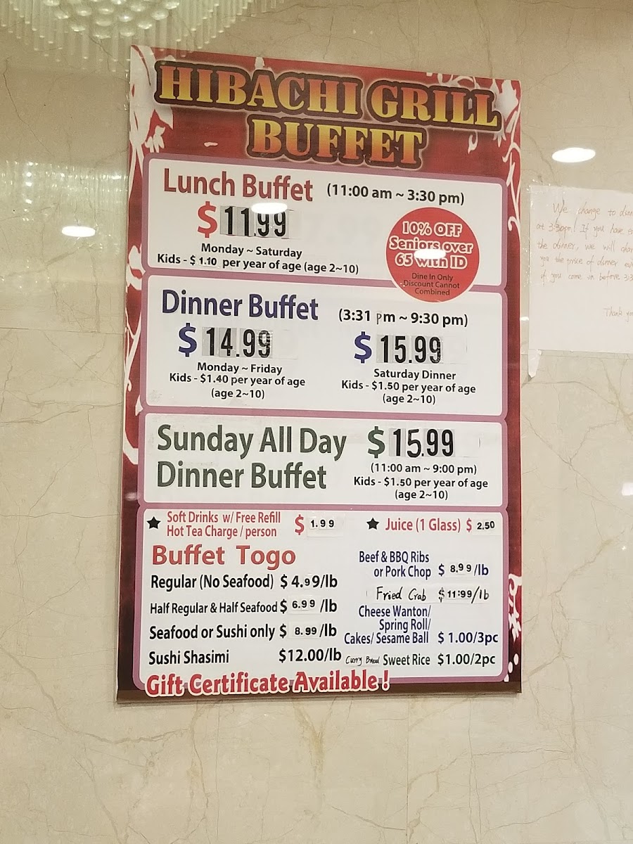 Hibachi Grill Buffet Menu